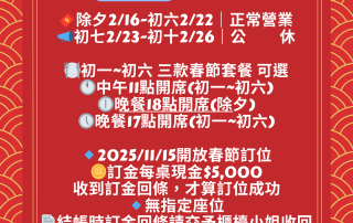 2️⃣0️⃣2️⃣6️⃣五月雪🔹️敦南店🔹️過年🧧🧨 感謝大家的踴躍參與,除夕內用座位均已額滿!! [...]